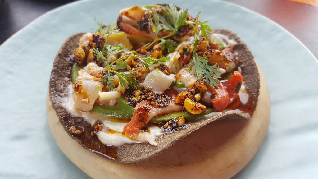 E' molto raffinato il ceviche di fasolari con avocado, maionese leggera, olio al sesamo, peperoncino messicano, servito su una tostada di mais nero, .