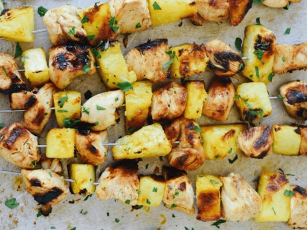 Spiedini di pollo e ananas